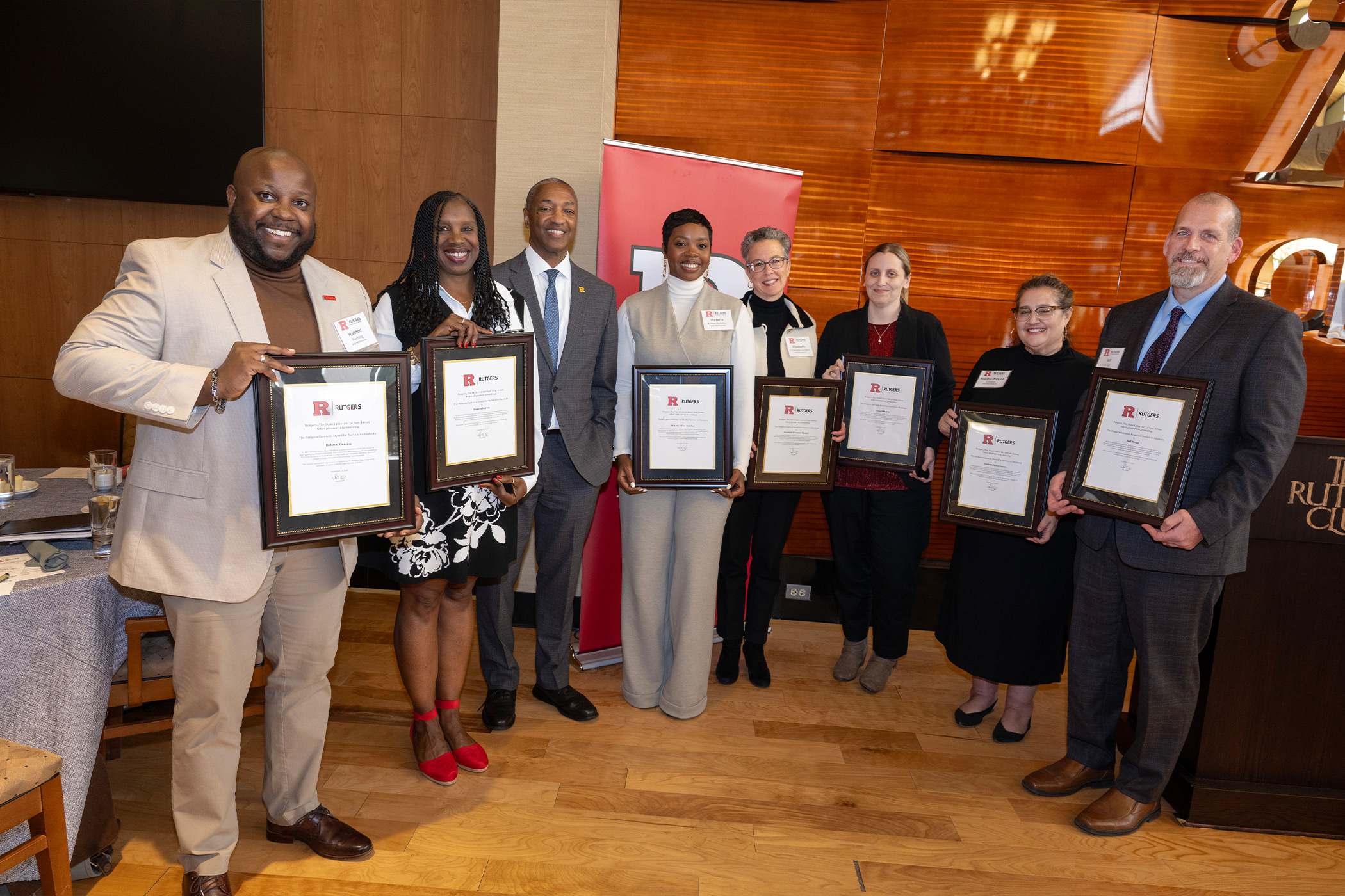 “They are all winners,” said President William F. Tate IV, who assisted in presenting the awards, “for the ways they represent Rutgers as an engaged community and an impactful research institution that creates opportunity, improves health, and advances society. I am impressed by their accomplishments and grateful for their work.”